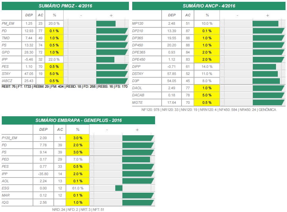 Avaliação genética muito forte nos 3 Sumários em que participa, estando entre as maiores DEPs de Peso a Desmana dentro do sumário ANCP ;